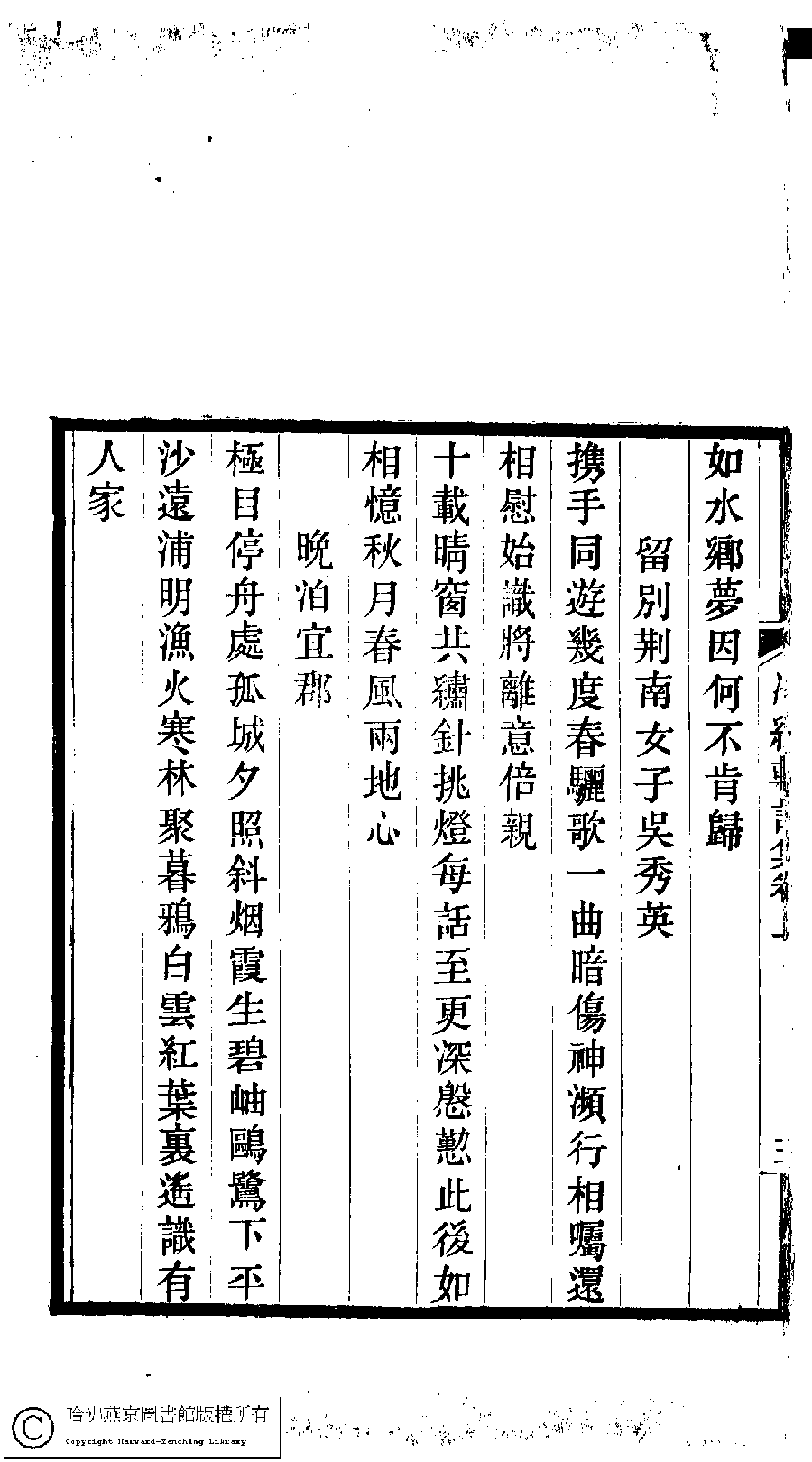 | (PRINT FRIENDLY VERSION) 冷紅軒詩集﹕二卷﹐附詞(清百保友蘭撰)。清光緒元年(1875)刻本。 ![]() Page : 上.3b | click for larger image | 冷紅軒詩集﹕二卷﹐附詞(清百保友蘭撰)。清光緒元年(1875)刻本。![]() Page : 上.3a | click for larger image | Back |