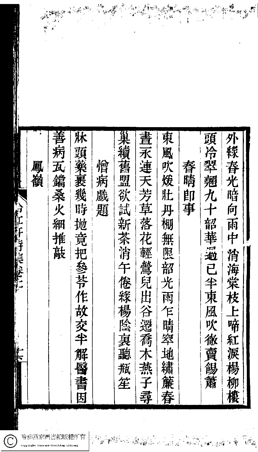 | Appears in: Leng hong xuan shi ji: 2 juan, fu ci (by Baibao Youlan, Qing dynasty) |