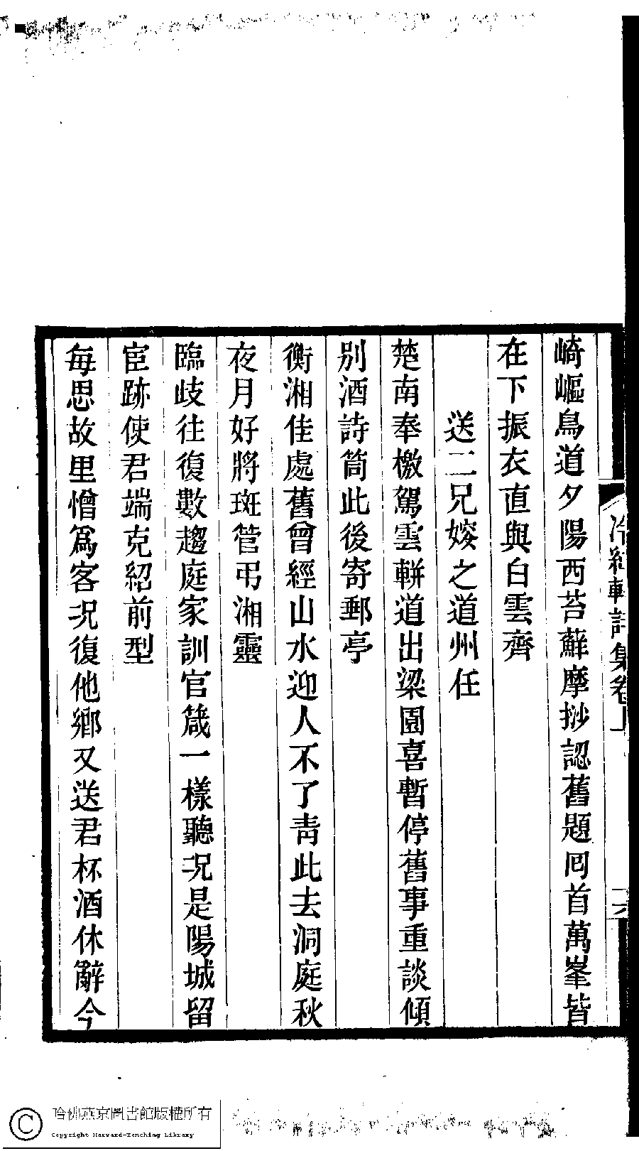 | (PRINT FRIENDLY VERSION) 冷紅軒詩集﹕二卷﹐附詞(清百保友蘭撰)。清光緒元年(1875)刻本。 ![]() Page : 上.16b | click for larger image | 冷紅軒詩集﹕二卷﹐附詞(清百保友蘭撰)。清光緒元年(1875)刻本。![]() Page : 上.16a | click for larger image | Back |