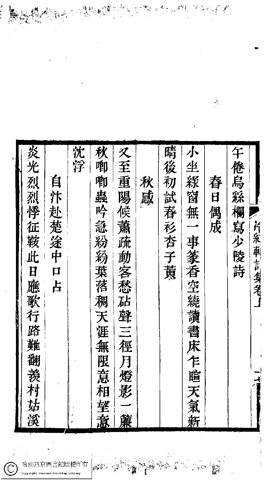 | (PRINT FRIENDLY VERSION) 冷紅軒詩集﹕二卷﹐附詞(清百保友蘭撰)。清光緒元年(1875)刻本。 ![]() Page : 上.17b | click for larger image | Back |