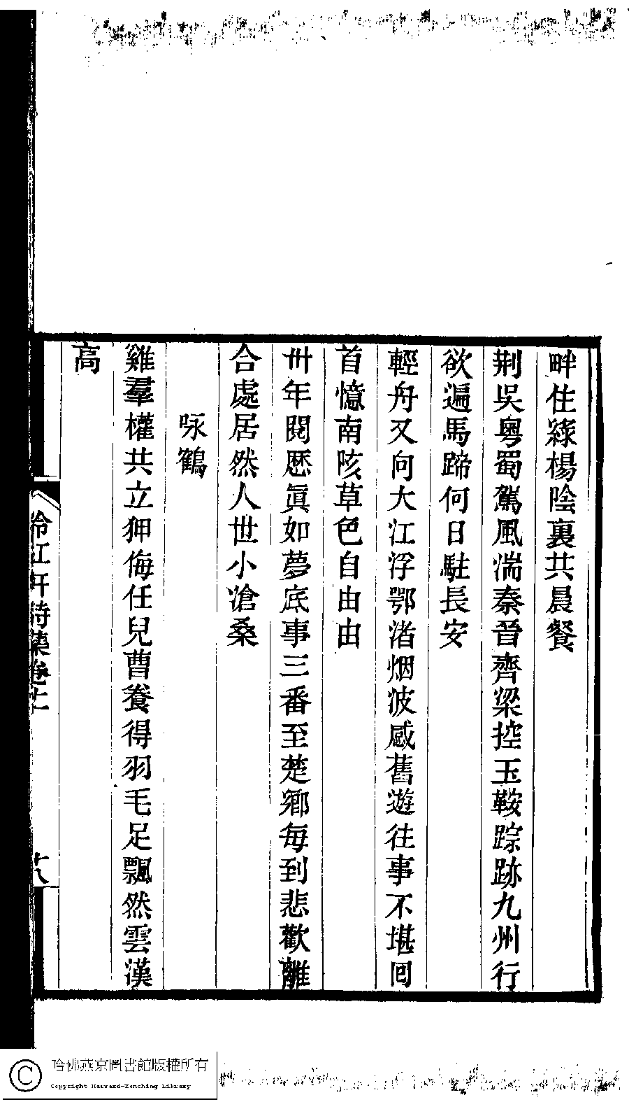| (PRINT FRIENDLY VERSION) 冷紅軒詩集﹕二卷﹐附詞(清百保友蘭撰)。清光緒元年(1875)刻本。 ![]() Page : 上.18a | click for larger image | 冷紅軒詩集﹕二卷﹐附詞(清百保友蘭撰)。清光緒元年(1875)刻本。![]() Page : 上.17b | click for larger image | Back |