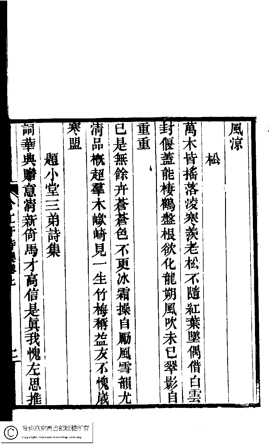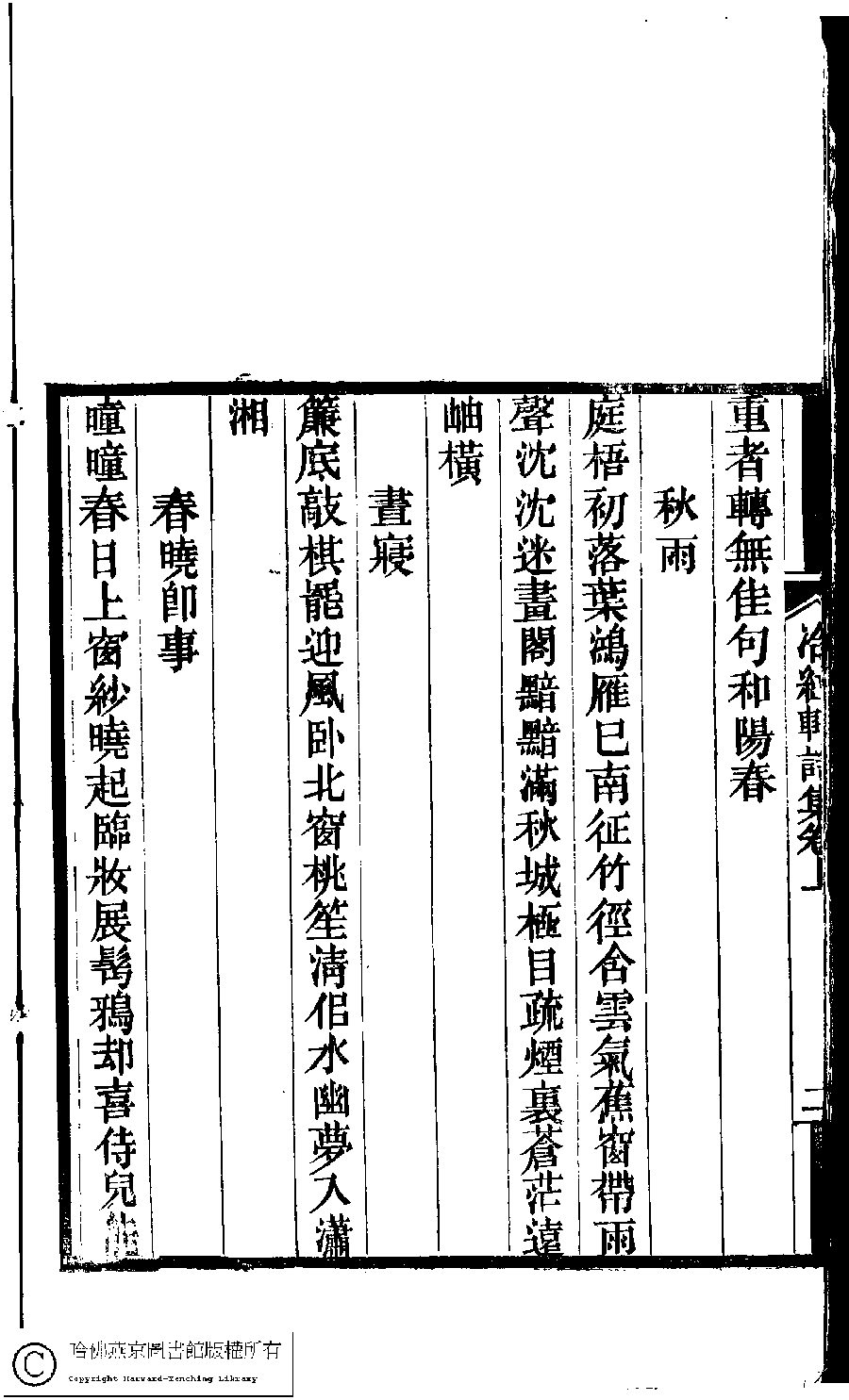 | (PRINT FRIENDLY VERSION) 冷紅軒詩集﹕二卷﹐附詞(清百保友蘭撰)。清光緒八年(1882)刻本。 ![]() Page : 上.2b | click for larger image | 冷紅軒詩集﹕二卷﹐附詞(清百保友蘭撰)。清光緒八年(1882)刻本。![]() Page : 上.2a | click for larger image | Back |