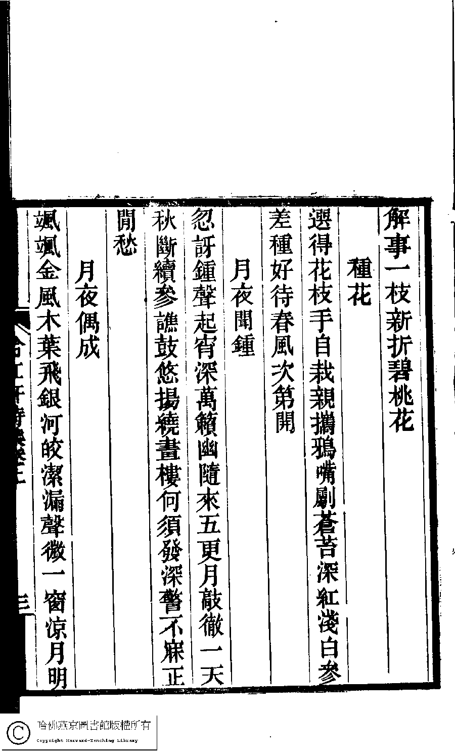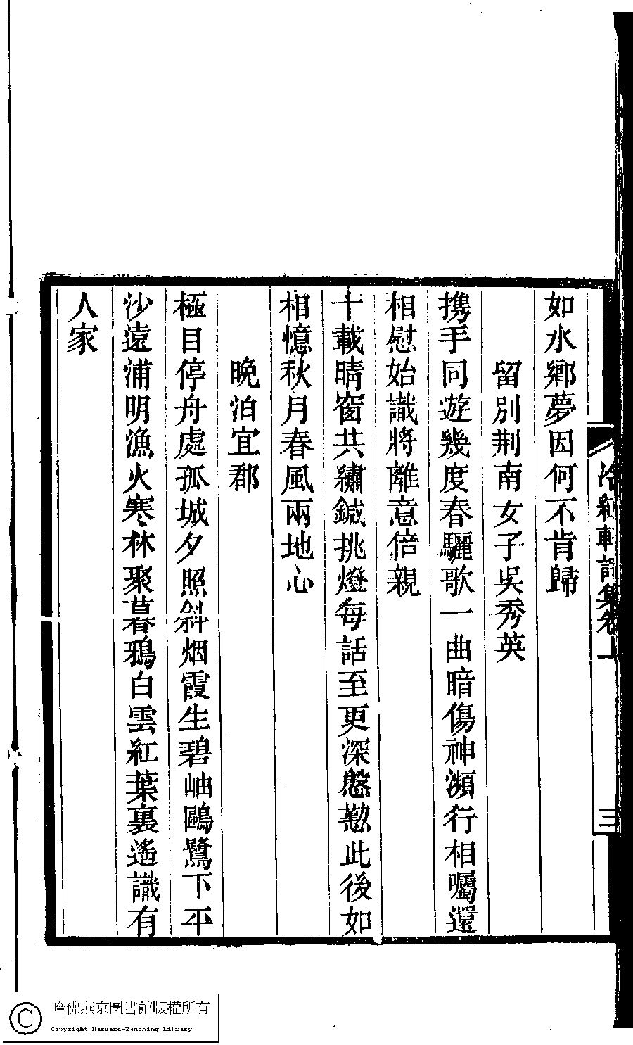 | (PRINT FRIENDLY VERSION) 冷紅軒詩集﹕二卷﹐附詞(清百保友蘭撰)。清光緒八年(1882)刻本。 ![]() Page : 上.3b | click for larger image | 冷紅軒詩集﹕二卷﹐附詞(清百保友蘭撰)。清光緒八年(1882)刻本。![]() Page : 上.3a | click for larger image | Back |