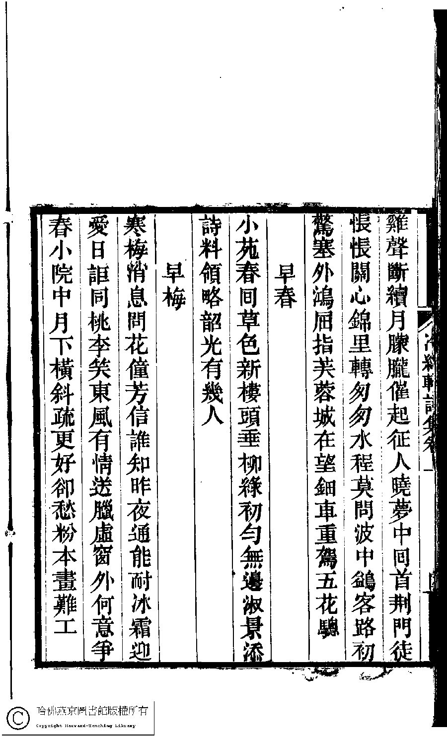 | (PRINT FRIENDLY VERSION) 冷紅軒詩集﹕二卷﹐附詞(清百保友蘭撰)。清光緒八年(1882)刻本。 ![]() Page : 上.4b | click for larger image | Back |