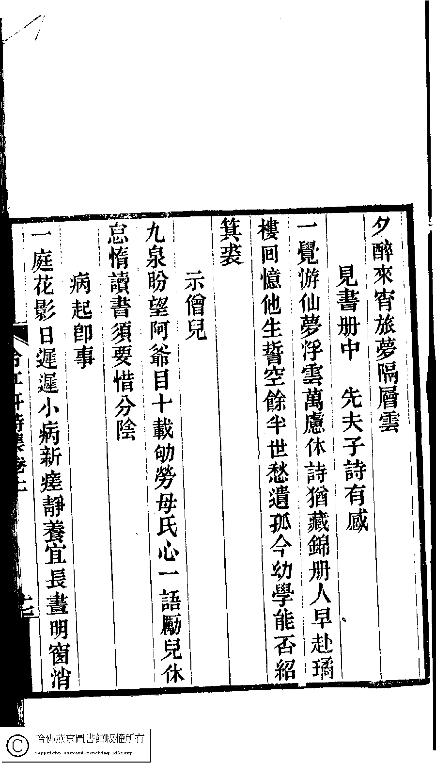 | (PRINT FRIENDLY VERSION) 冷紅軒詩集﹕二卷﹐附詞(清百保友蘭撰)。清光緒八年(1882)刻本。 ![]() Page : 上.17b | click for larger image | 冷紅軒詩集﹕二卷﹐附詞(清百保友蘭撰)。清光緒八年(1882)刻本。![]() Page : 上.17a | click for larger image | Back |