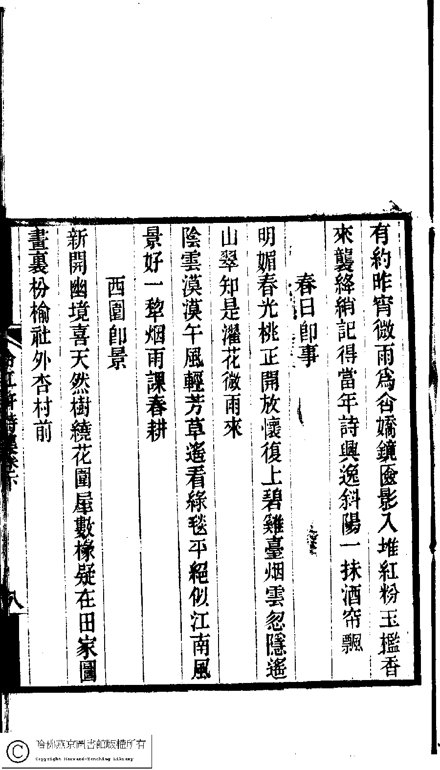 | (PRINT FRIENDLY VERSION) 冷紅軒詩集﹕二卷﹐附詞(清百保友蘭撰)。清光緒八年(1882)刻本。 ![]() Page : 下.8a | click for larger image | Back |