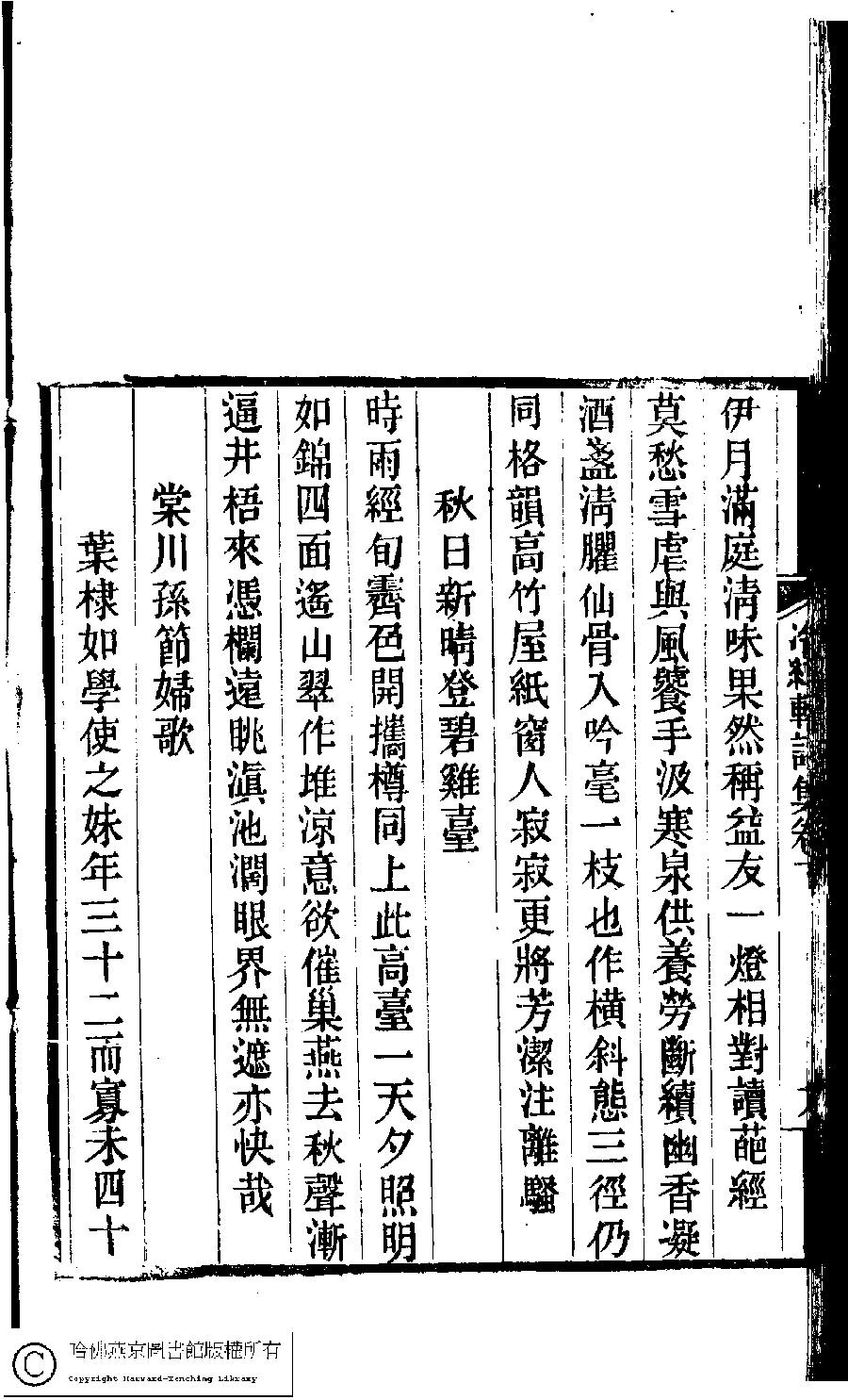 | Notes: 葉棣如學使之妹年三十二而寡未四十而卒學使聞耗悲不自勝為敍其梗口丐詩文以廣其傳因作長歌一首 |
