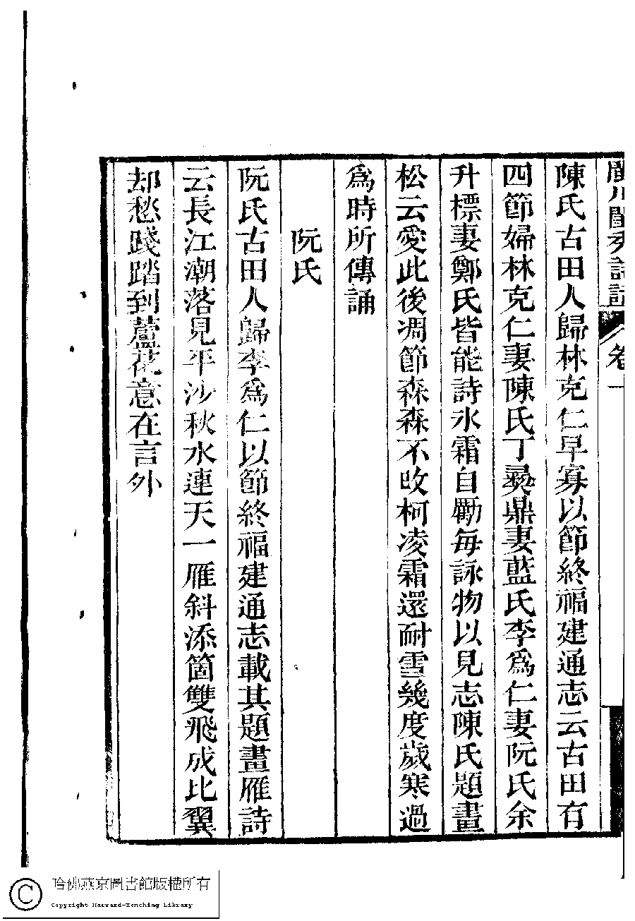 | (PRINT FRIENDLY VERSION) 閩川閨秀詩話﹕四卷(清梁章鉅撰)。光緖元年(1875)清刻本 ![]() Page : 1.6b | click for larger image | Back |