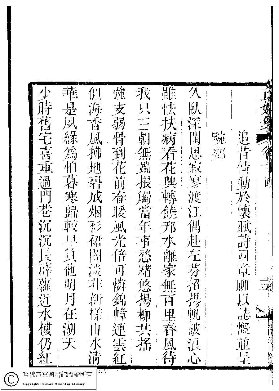 Poem [Li xia qian san ri yu fang xiao bing xi jing gui zhong shi Zuo Wanxiang fu ren wen Yangzhou shao yao sheng kai yao yu tong wang yu li ji du jiang shang ming hua zhi qi li gan gu zhai zhi huang liang fu jin zhui xi qing dong yu huai fu shi si zhang liao yi zhi kai bing cheng Wanxiang ]