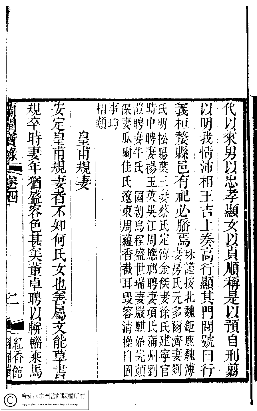 | (PRINT FRIENDLY VERSION) 蘭閨寶錄﹕六卷(清惲珠輯)。清道光十一年(1831)紅香館刻本。 ![]() Page : 4.2a | click for larger image | 蘭閨寶錄﹕六卷(清惲珠輯)。清道光十一年(1831)紅香館刻本。![]() Page : 4.1b | click for larger image | Back |