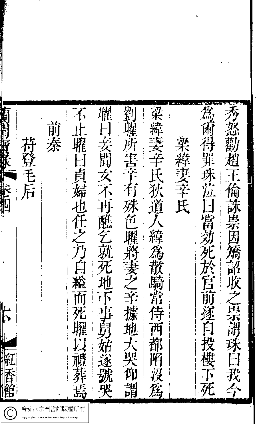 | (PRINT FRIENDLY VERSION) 蘭閨寶錄﹕六卷(清惲珠輯)。清道光十一年(1831)紅香館刻本。 ![]() Page : 4.6a | click for larger image | Back |