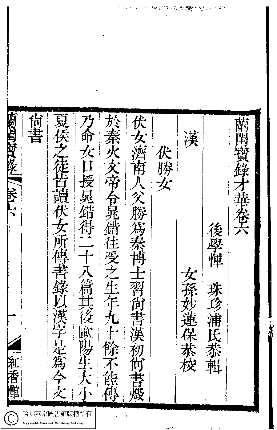 | (PRINT FRIENDLY VERSION) 蘭閨寶錄﹕六卷(清惲珠輯)。清道光十一年(1831)紅香館刻本。 ![]() Page : 6.1a | click for larger image | Back |