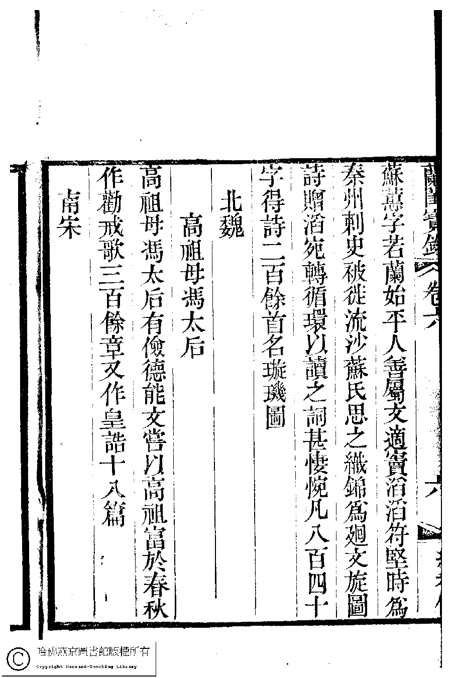 | (PRINT FRIENDLY VERSION) 蘭閨寶錄﹕六卷(清惲珠輯)。清道光十一年(1831)紅香館刻本。 ![]() Page : 6.6b | click for larger image | Back |