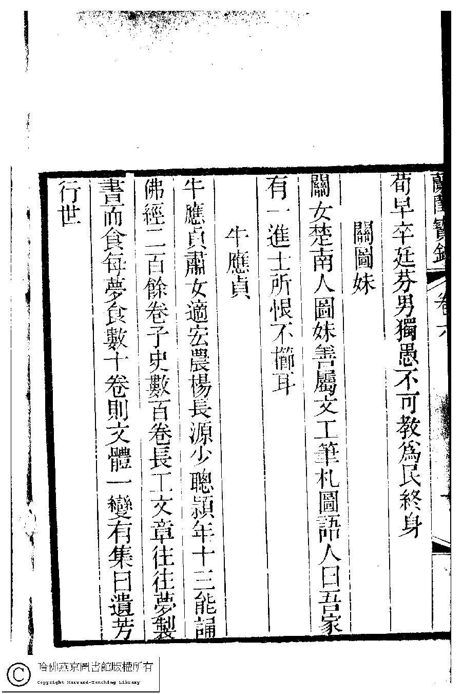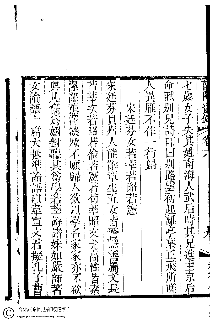 | (PRINT FRIENDLY VERSION) 蘭閨寶錄﹕六卷(清惲珠輯)。清道光十一年(1831)紅香館刻本。 ![]() Page : 6.10b | click for larger image | 蘭閨寶錄﹕六卷(清惲珠輯)。清道光十一年(1831)紅香館刻本。![]() Page : 6.10a | click for larger image | 蘭閨寶錄﹕六卷(清惲珠輯)。清道光十一年(1831)紅香館刻本。![]() Page : 6.9b | click for larger image | Back |