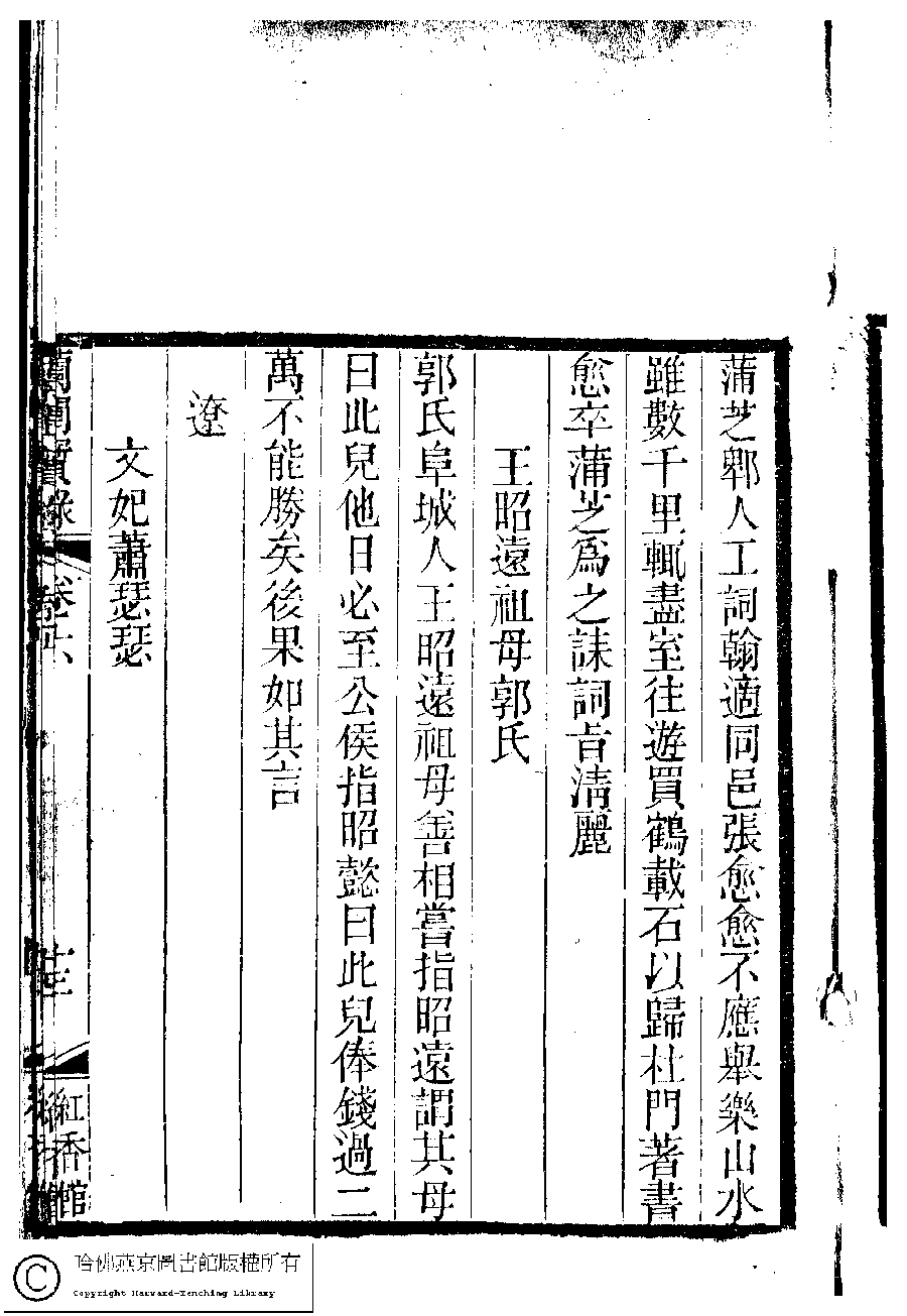 | (PRINT FRIENDLY VERSION) 蘭閨寶錄﹕六卷(清惲珠輯)。清道光十一年(1831)紅香館刻本。 ![]() Page : 6.13a | click for larger image | 蘭閨寶錄﹕六卷(清惲珠輯)。清道光十一年(1831)紅香館刻本。![]() Page : 6.12b | click for larger image | Back |