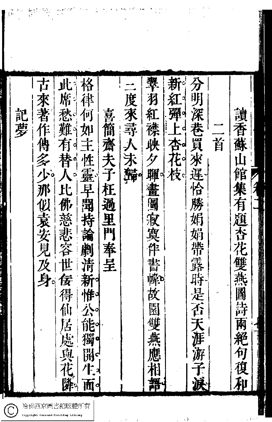 | Appears in: Suiyuan nü di zi shi xuan: 6 juan (edited by Yuan Mei, Qing dynasty) |
