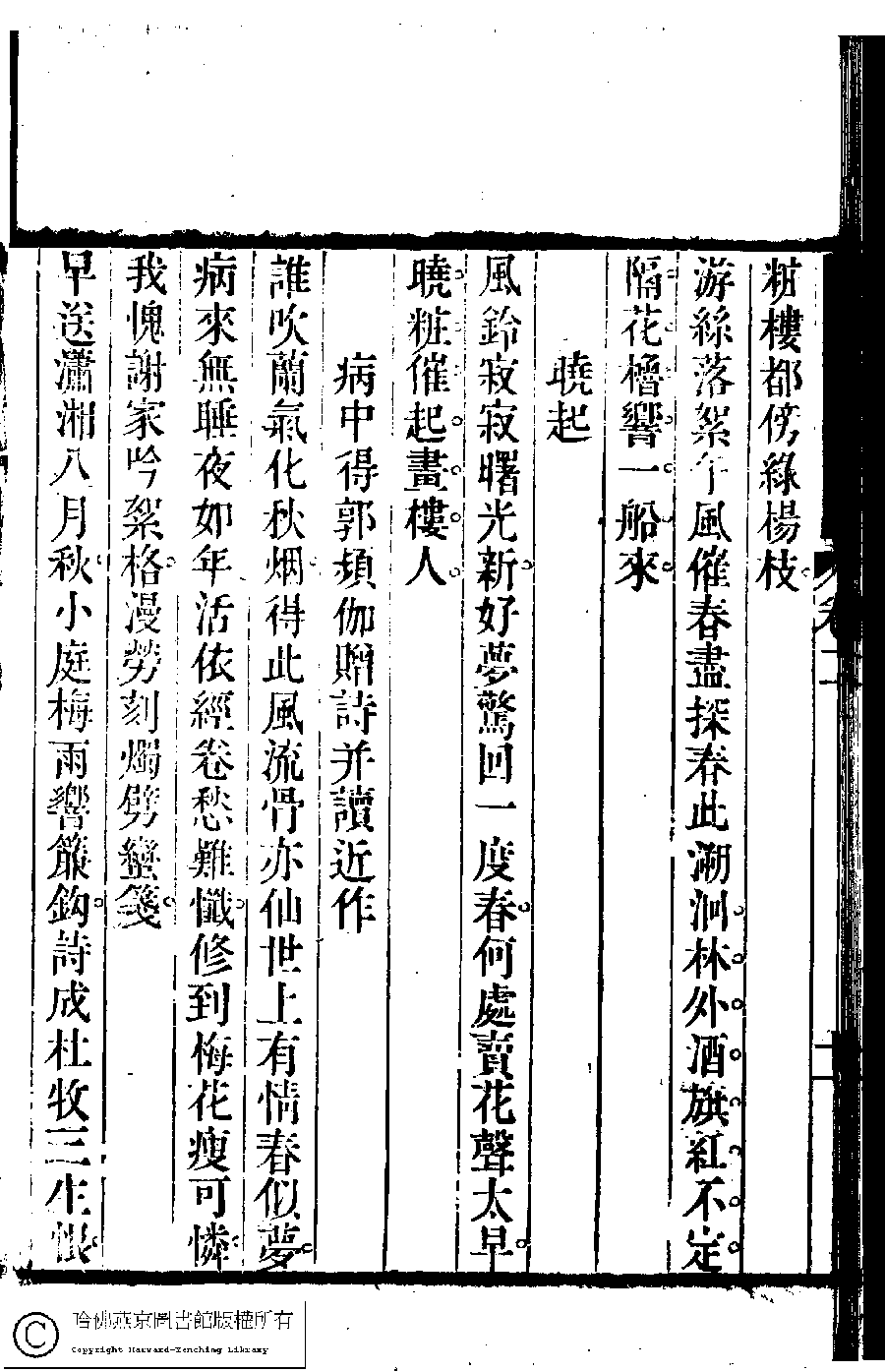 | Appears in: Suiyuan nü di zi shi xuan: 6 juan (edited by Yuan Mei, Qing dynasty) |