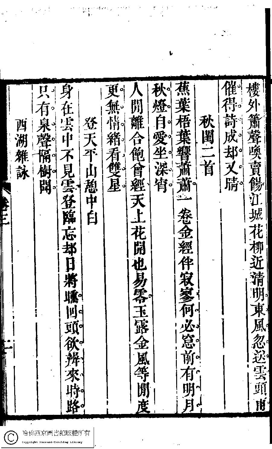 | Appears in: Suiyuan nü di zi shi xuan: 6 juan (edited by Yuan Mei, Qing dynasty) |