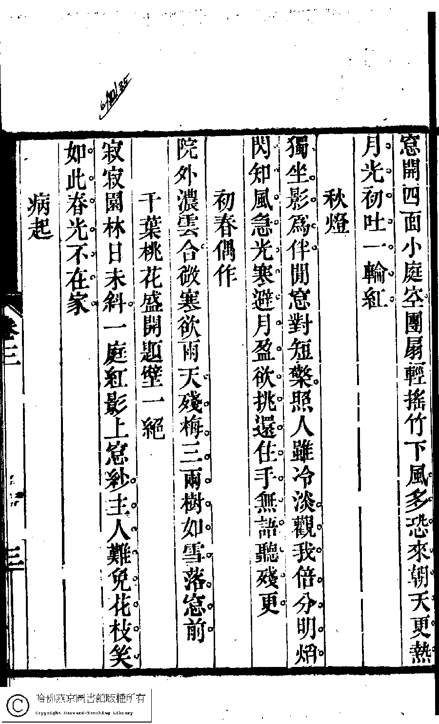 | Appears in: Suiyuan nü di zi shi xuan: 6 juan (edited by Yuan Mei, Qing dynasty) |
