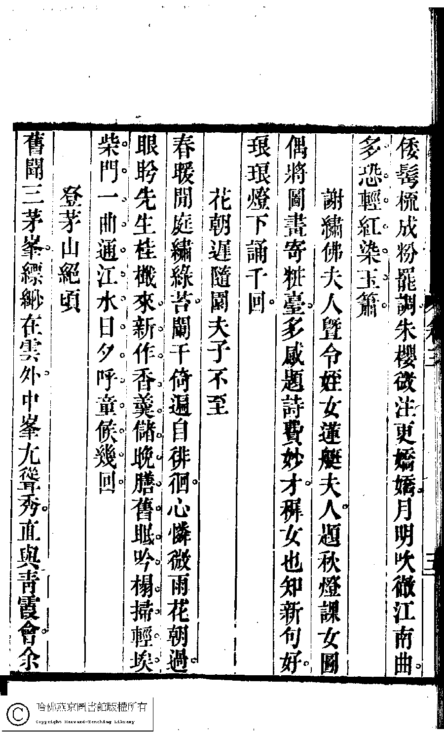 | Appears in: Suiyuan nü di zi shi xuan: 6 juan (edited by Yuan Mei, Qing dynasty) |