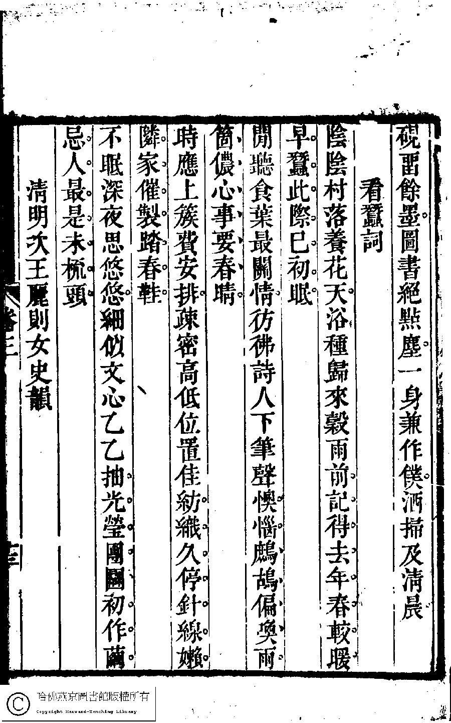 | Appears in: Suiyuan nü di zi shi xuan: 6 juan (edited by Yuan Mei, Qing dynasty) |