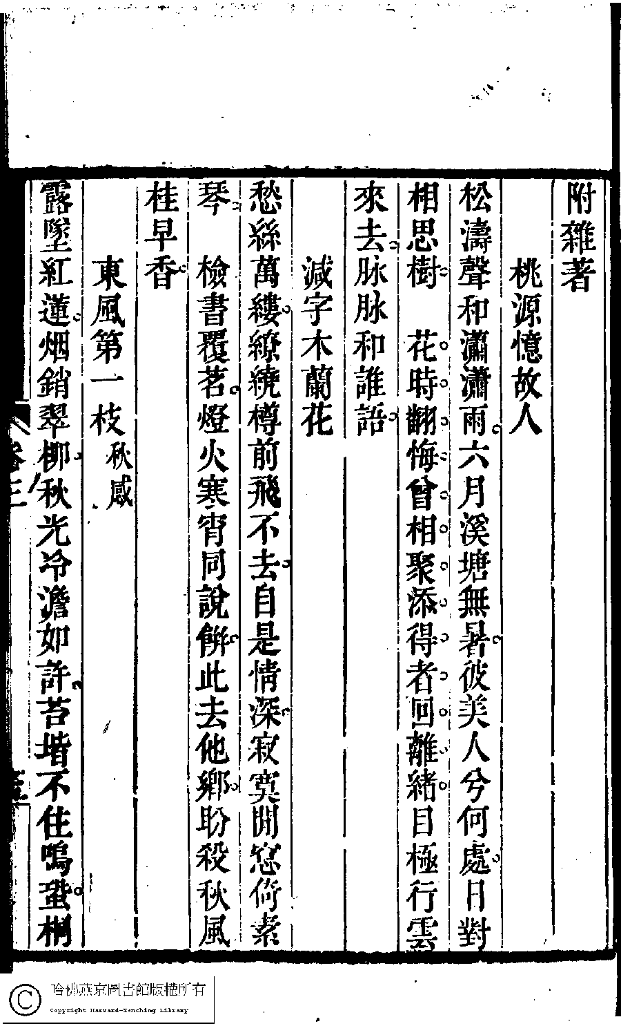 | Appears in: Suiyuan nü di zi shi xuan: 6 juan (edited by Yuan Mei, Qing dynasty) |