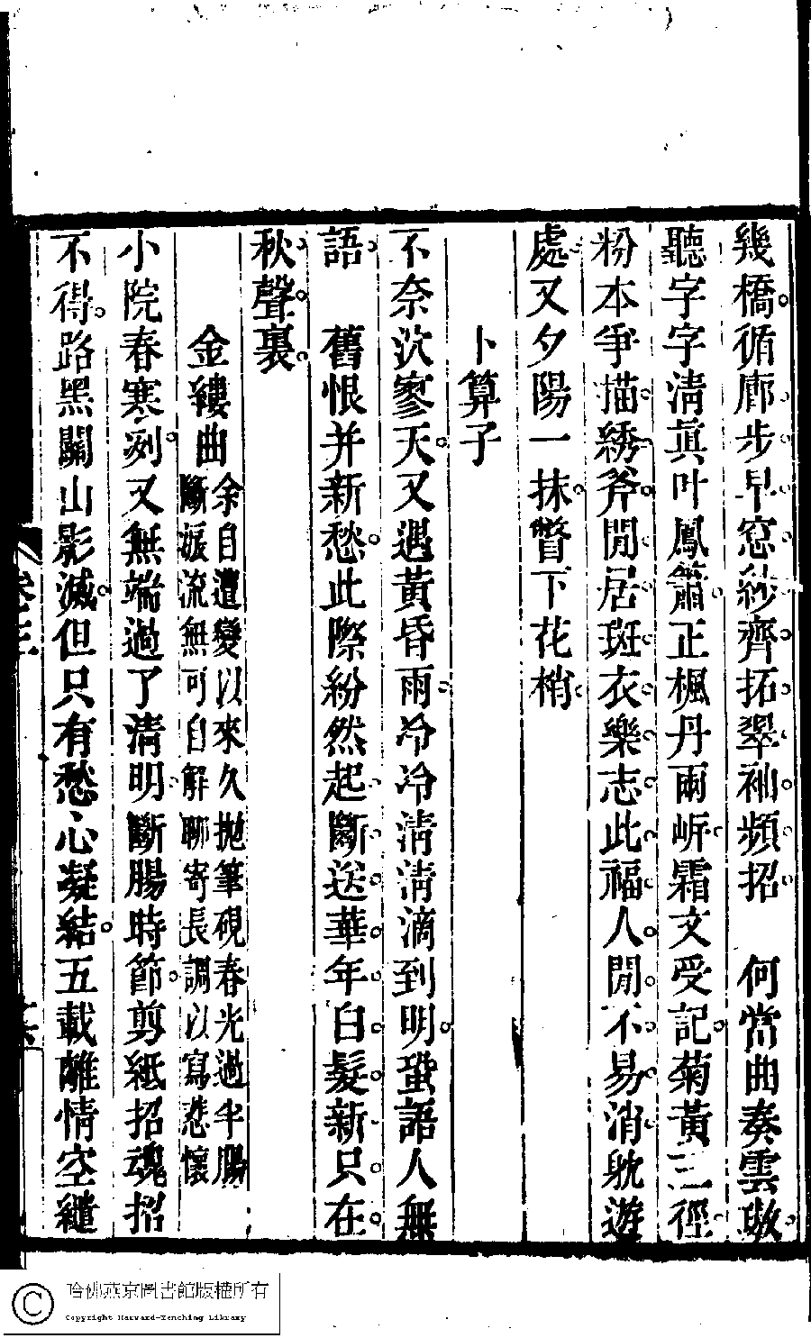 | Appears in: Suiyuan nü di zi shi xuan: 6 juan (edited by Yuan Mei, Qing dynasty) |