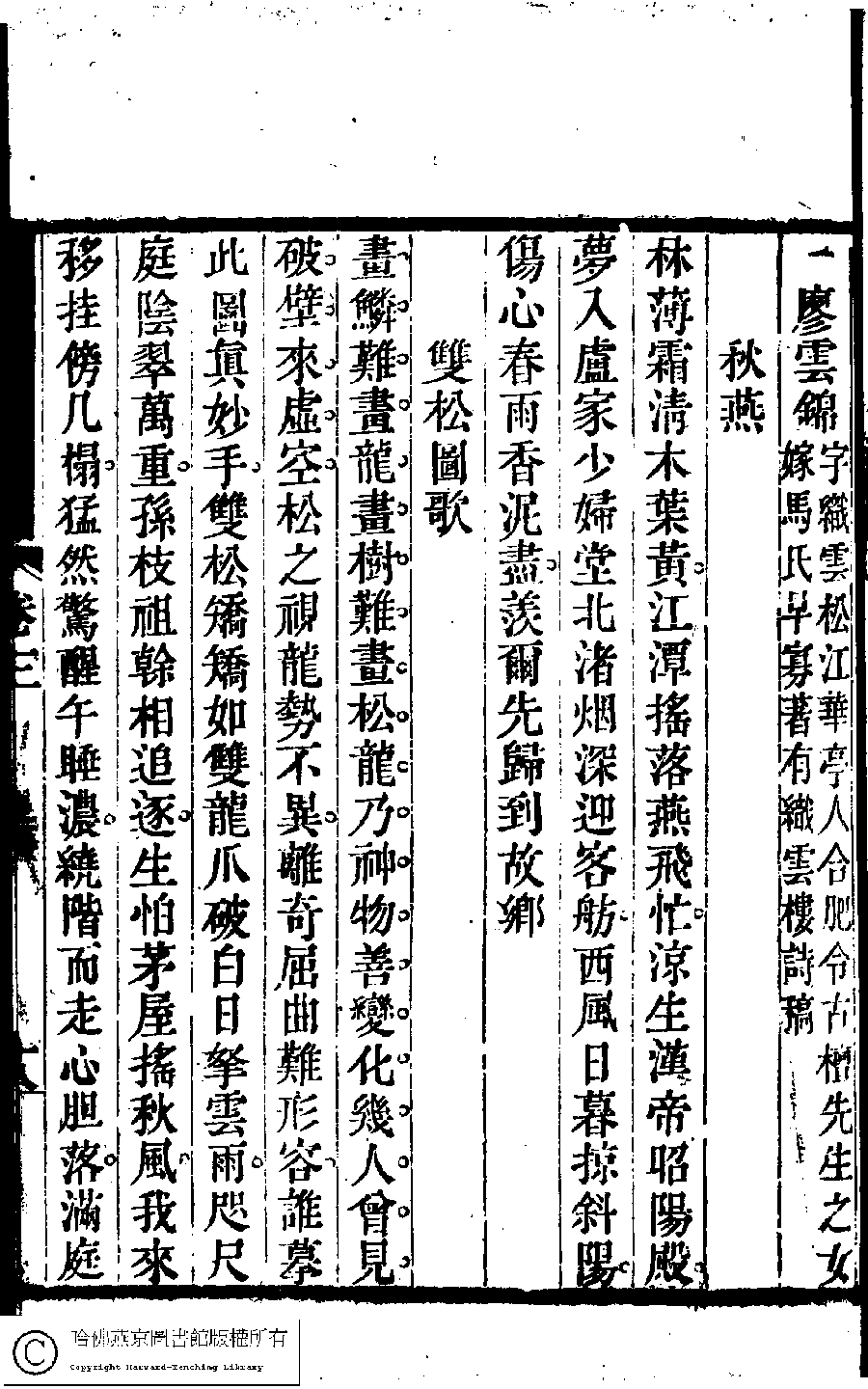 | Appears in: Suiyuan nü di zi shi xuan: 6 juan (edited by Yuan Mei, Qing dynasty) |