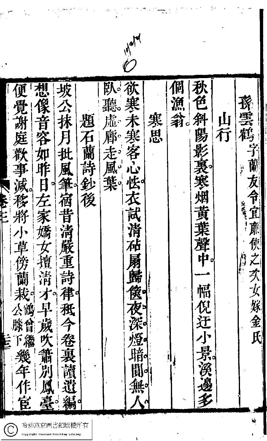 | Appears in: Suiyuan nü di zi shi xuan: 6 juan (edited by Yuan Mei, Qing dynasty) |