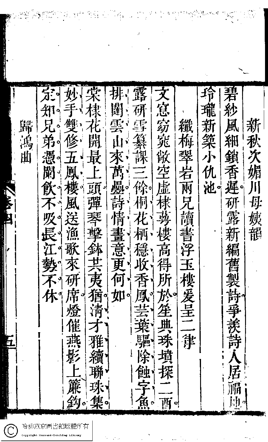 | Appears in: Suiyuan nü di zi shi xuan: 6 juan (edited by Yuan Mei, Qing dynasty) |