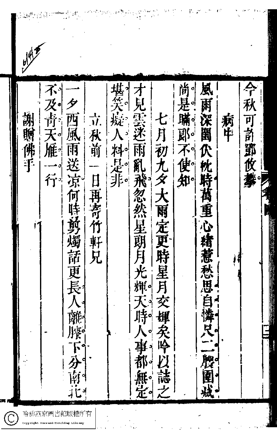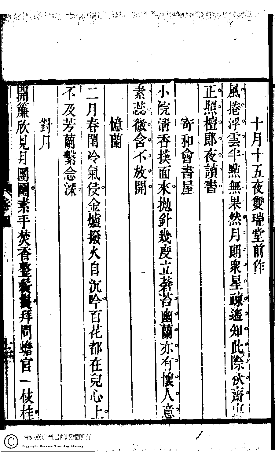 | Appears in: Suiyuan nü di zi shi xuan: 6 juan (edited by Yuan Mei, Qing dynasty) |