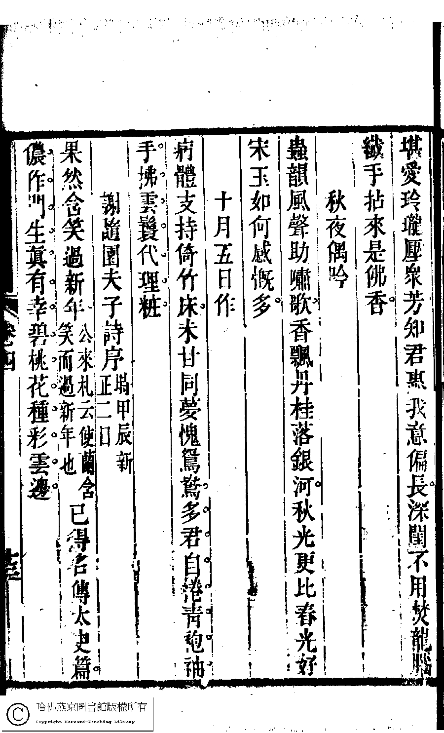 | Appears in: Suiyuan nü di zi shi xuan: 6 juan (edited by Yuan Mei, Qing dynasty) |