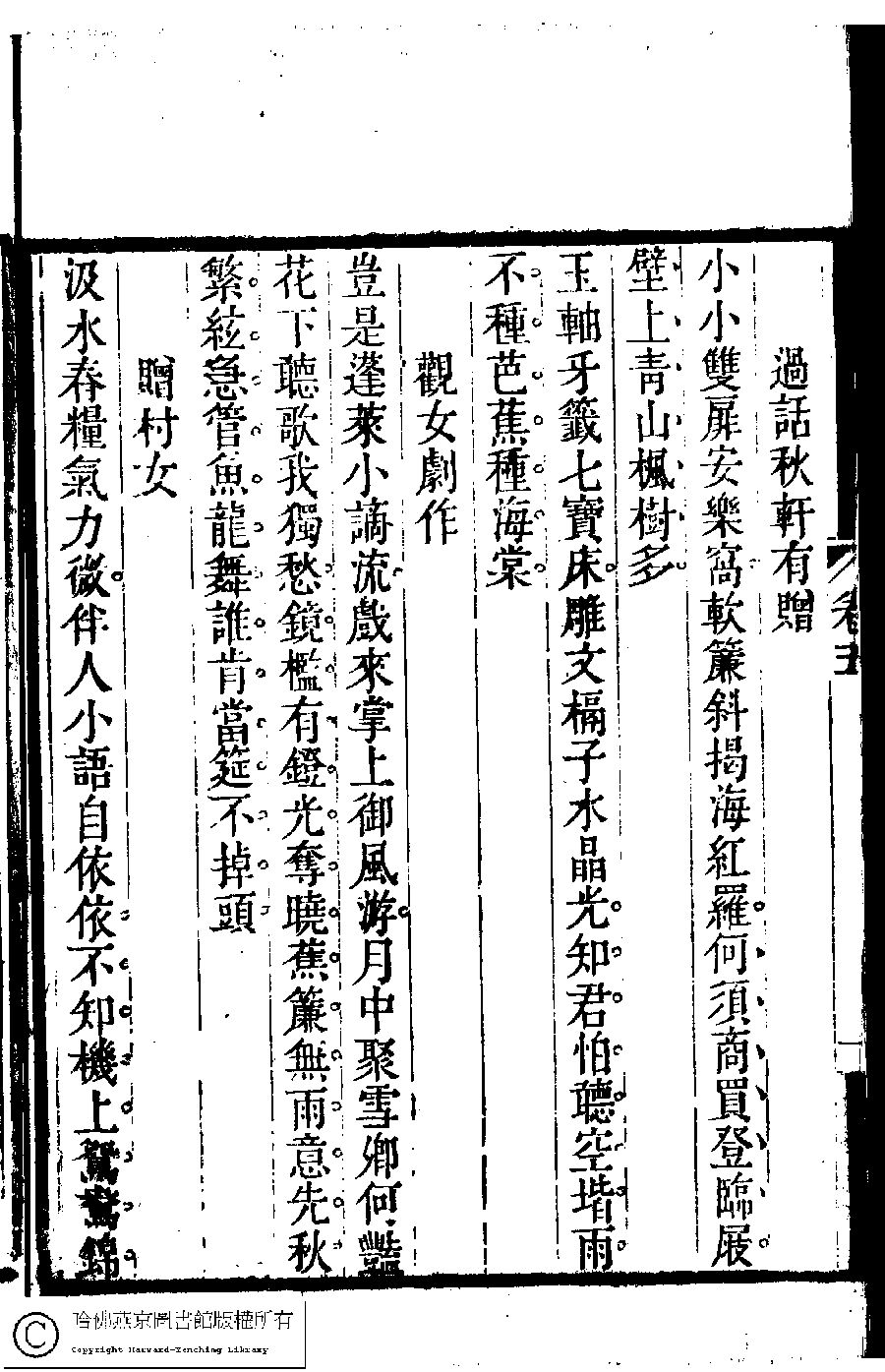 | Appears in: Suiyuan nü di zi shi xuan: 6 juan (edited by Yuan Mei, Qing dynasty) |