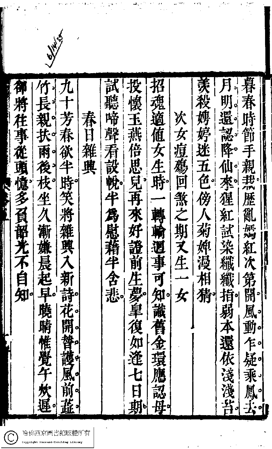 | Appears in: Suiyuan nü di zi shi xuan: 6 juan (edited by Yuan Mei, Qing dynasty) |