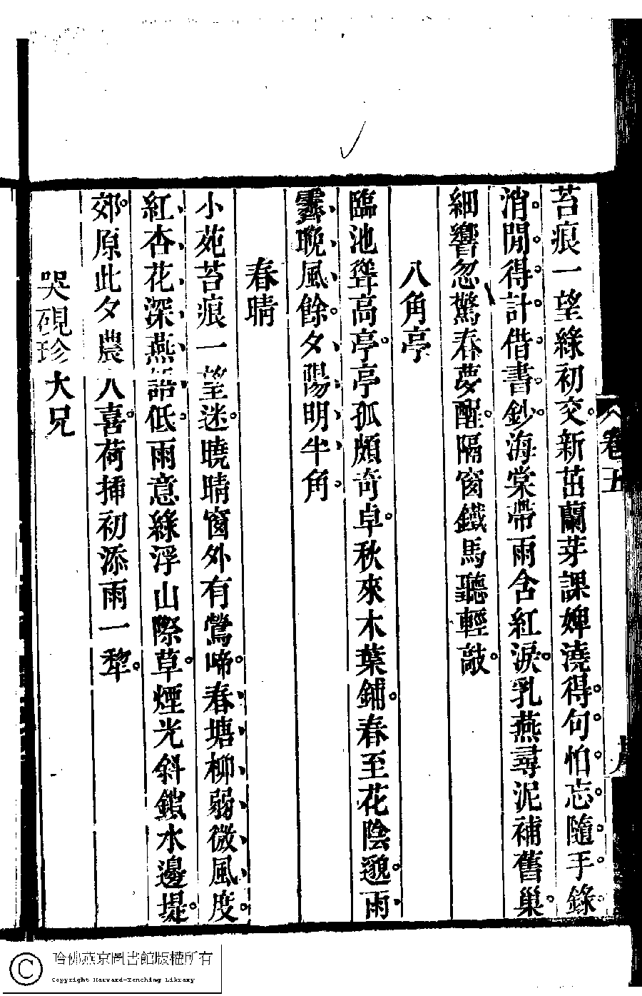 | Appears in: Suiyuan nü di zi shi xuan: 6 juan (edited by Yuan Mei, Qing dynasty) |