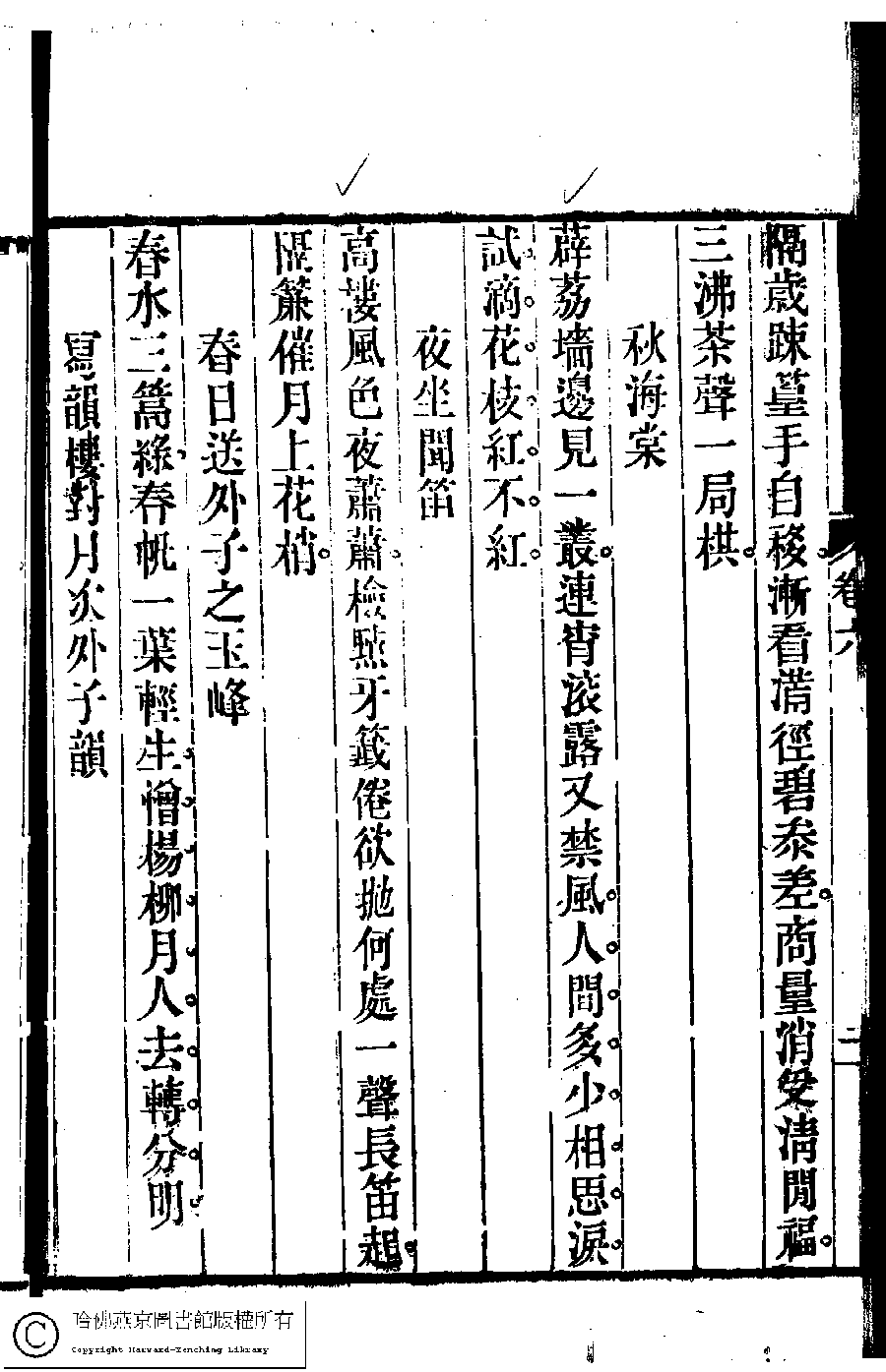 | Appears in: Suiyuan nü di zi shi xuan: 6 juan (edited by Yuan Mei, Qing dynasty) |