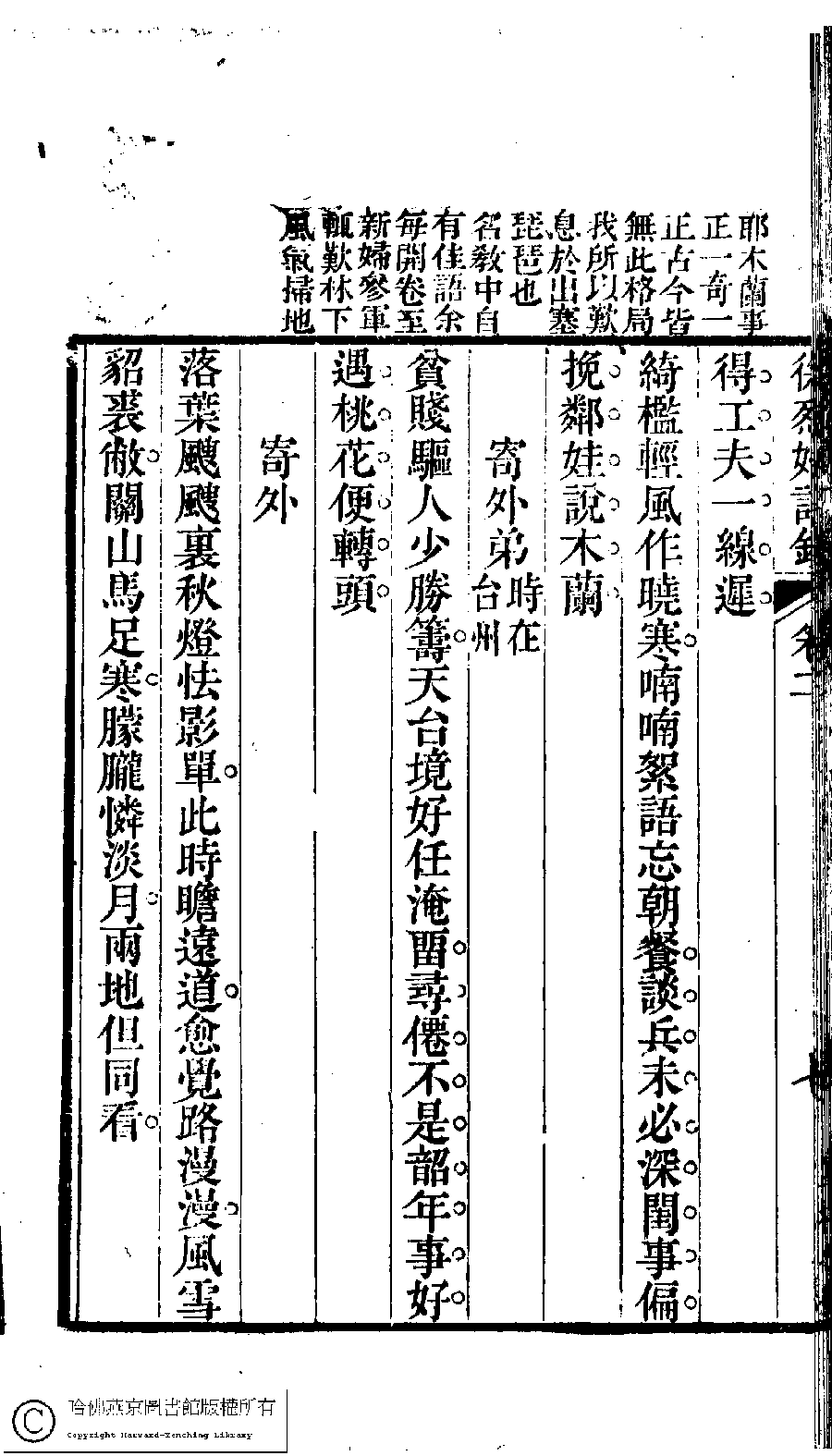 | (PRINT FRIENDLY VERSION) 徐烈婦詩鈔﹕二卷﹐附吳絳雪年譜﹕一卷(清吳宗愛撰)。清光緒元年(1875)雲鶴仙館刻本。 ![]() Page : 2.7b | click for larger image | Back |