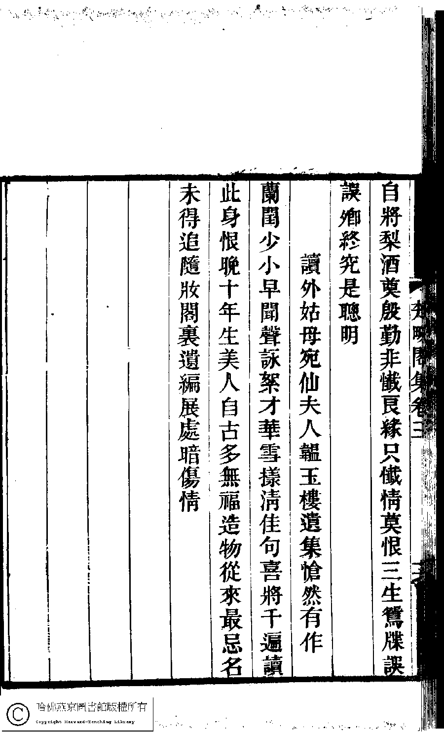| (PRINT FRIENDLY VERSION) 楚畹閣集﹕十二卷(清季蘭韻撰)。清道光二十七年(1847)刻本 ![]() Page : 3.16b | click for larger image | Back |