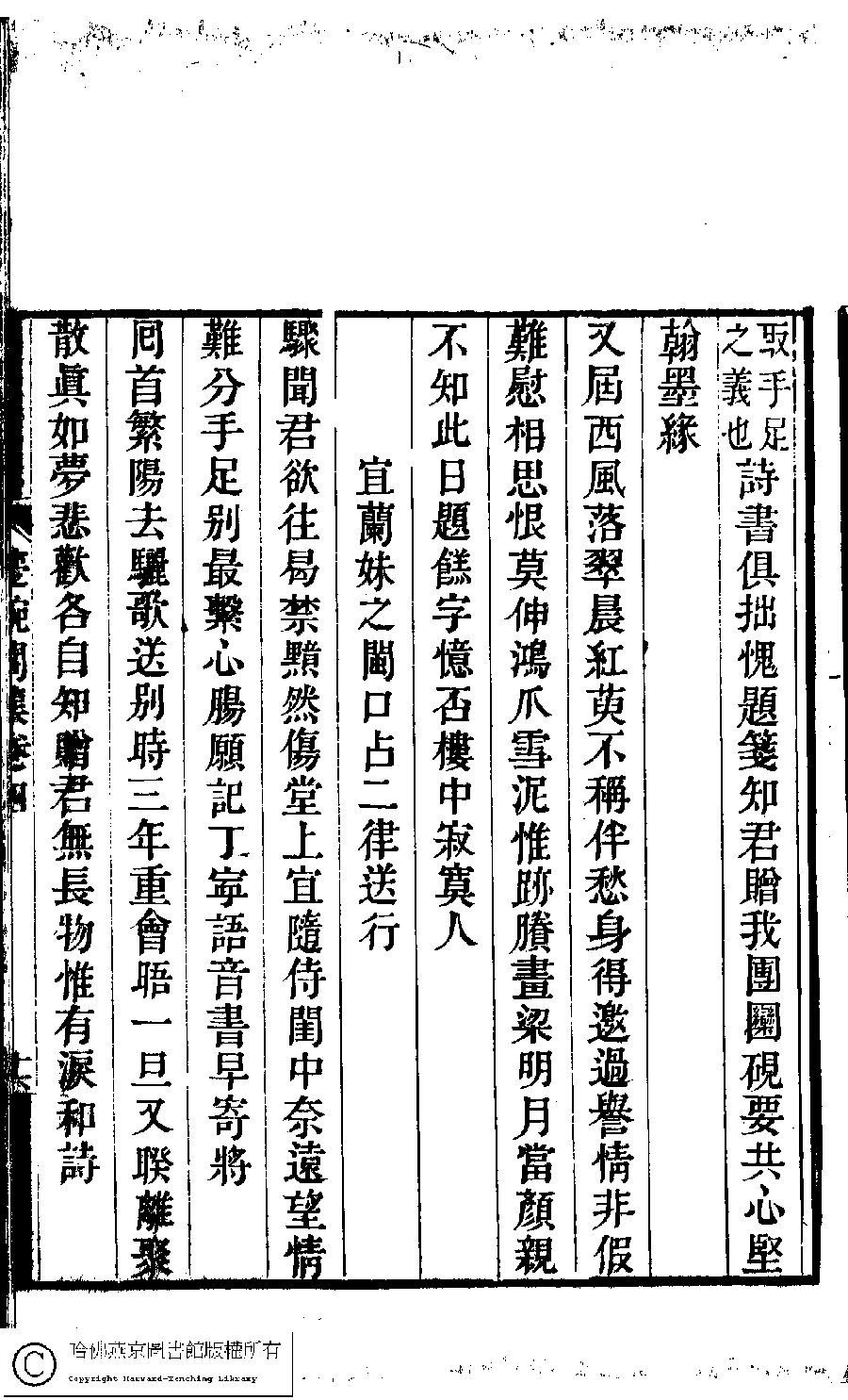 | (PRINT FRIENDLY VERSION) 楚畹閣集﹕十二卷(清季蘭韻撰)。清道光二十七年(1847)刻本 ![]() Page : 4.16a | click for larger image | Back |