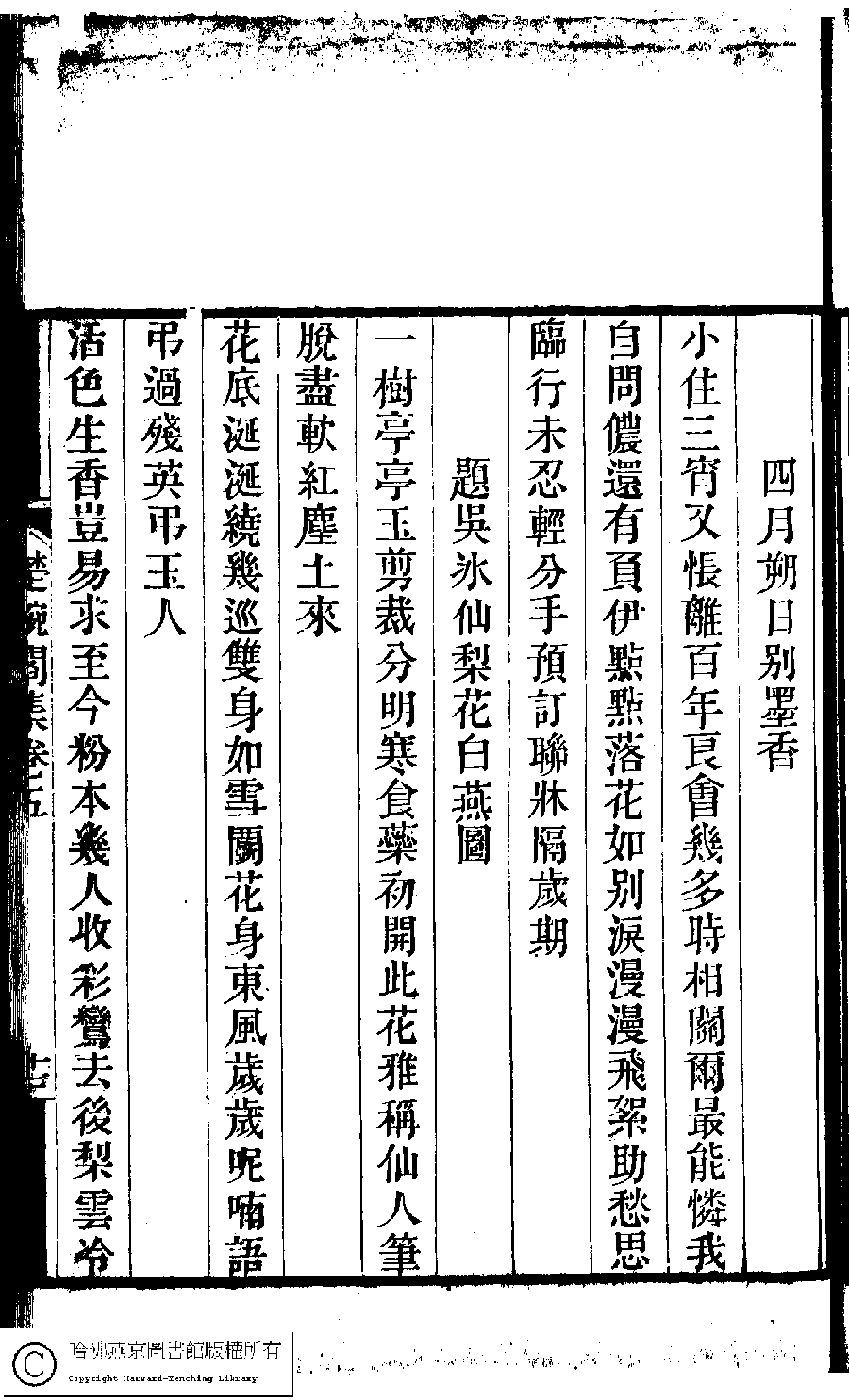 | (PRINT FRIENDLY VERSION) 楚畹閣集﹕十二卷(清季蘭韻撰)。清道光二十七年(1847)刻本 ![]() Page : 5.17b | click for larger image | 楚畹閣集﹕十二卷(清季蘭韻撰)。清道光二十七年(1847)刻本![]() Page : 5.17a | click for larger image | Back |