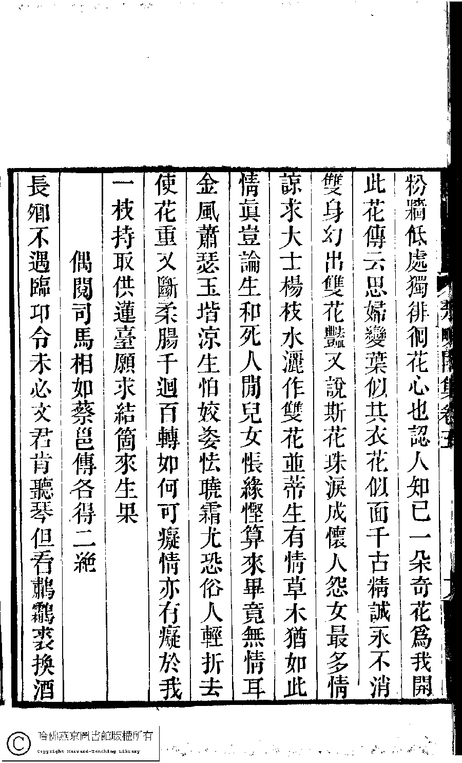 | (PRINT FRIENDLY VERSION) 楚畹閣集﹕十二卷(清季蘭韻撰)。清道光二十七年(1847)刻本 ![]() Page : 5.18b | click for larger image | 楚畹閣集﹕十二卷(清季蘭韻撰)。清道光二十七年(1847)刻本![]() Page : 5.18a | click for larger image | Back |