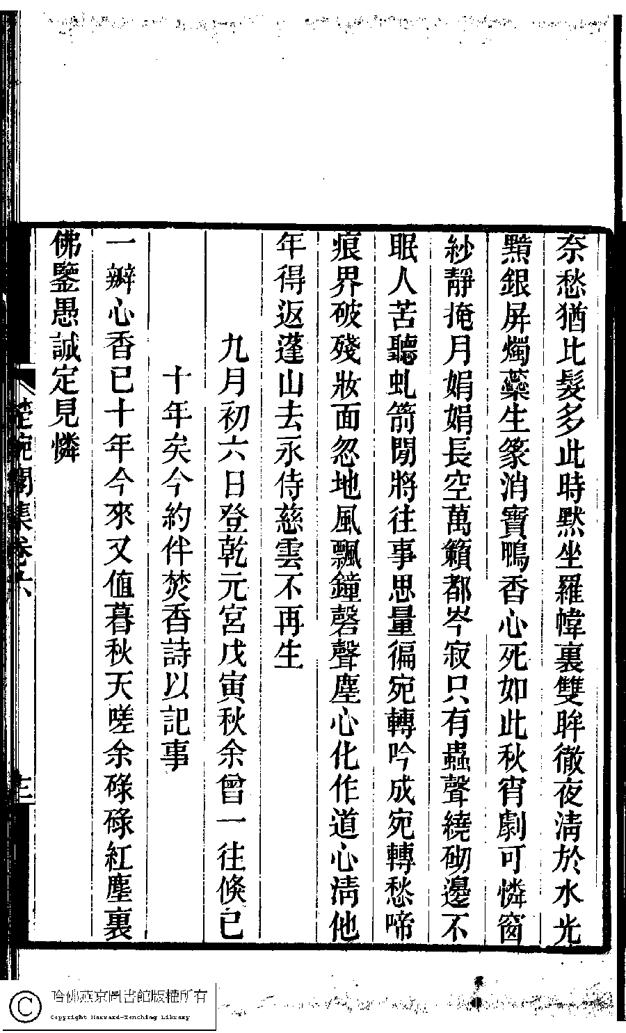 Poem [Jiu yue chu liu ri deng Qian yuan gong wu yin qiu yu ceng yi wang shu yi shi nian yi jin yue ban fen xiang shi yi ji shi]
