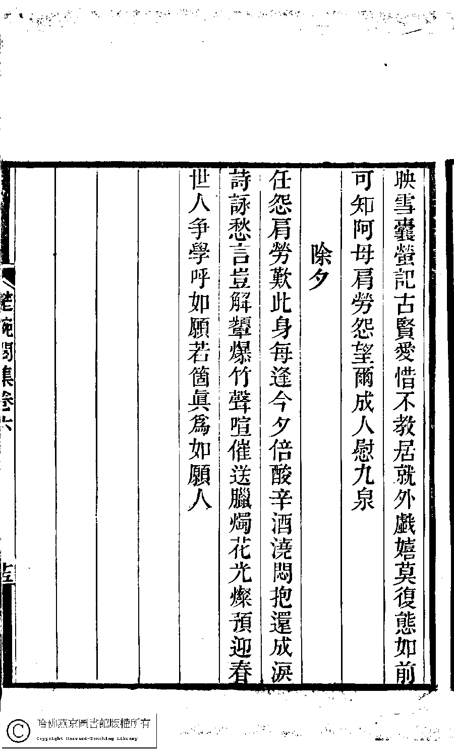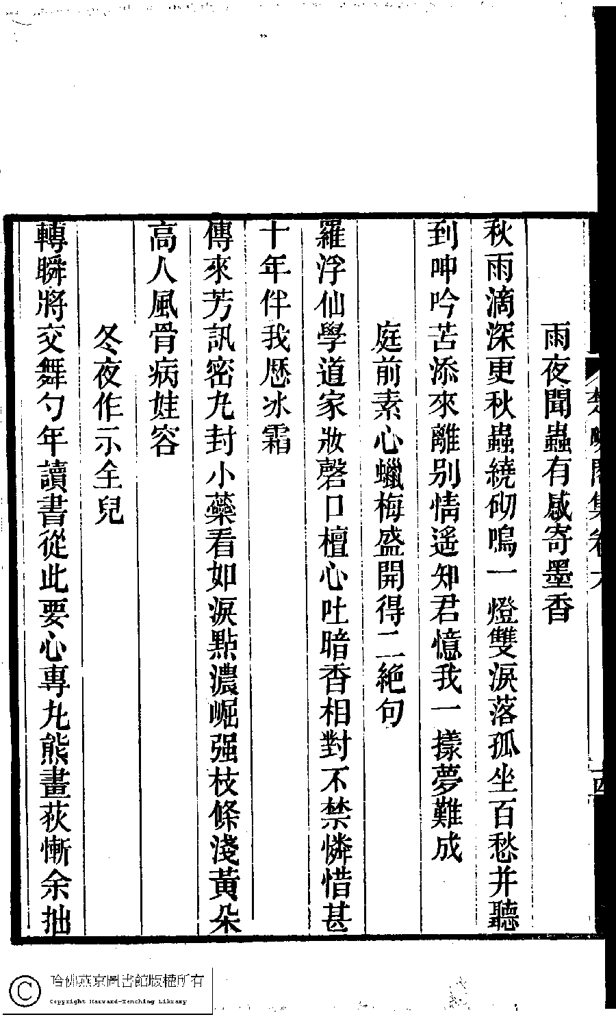 | (PRINT FRIENDLY VERSION) 楚畹閣集﹕十二卷(清季蘭韻撰)。清道光二十七年(1847)刻本 ![]() Page : 6.15a | click for larger image | 楚畹閣集﹕十二卷(清季蘭韻撰)。清道光二十七年(1847)刻本![]() Page : 6.14b | click for larger image | Back |