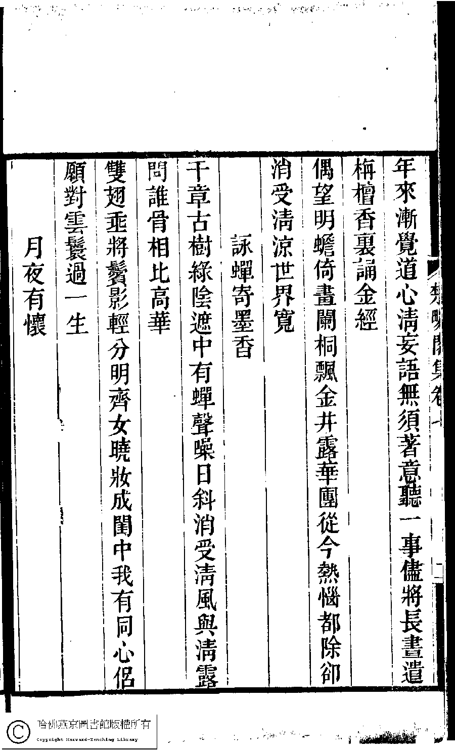 | (PRINT FRIENDLY VERSION) 楚畹閣集﹕十二卷(清季蘭韻撰)。清道光二十七年(1847)刻本 ![]() Page : 7.2b | click for larger image | Back |