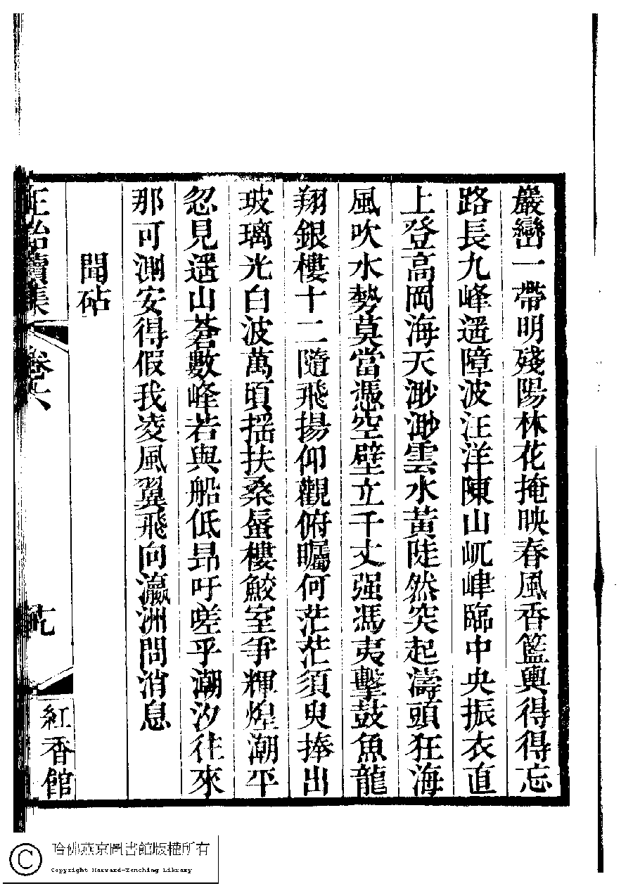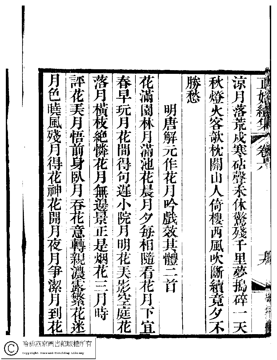 | (PRINT FRIENDLY VERSION) 國朝閨秀正始續集﹕十卷﹐附錄﹕一卷﹐補遺﹕一卷﹐輓詞﹕一卷(清惲珠輯)。清道光十六年(1836)紅香館刻本。 ![]() Page : 6.19b | click for larger image | 國朝閨秀正始續集﹕十卷﹐附錄﹕一卷﹐補遺﹕一卷﹐輓詞﹕一卷(清惲珠輯)。清道光十六年(1836)紅香館刻本。![]() Page : 6.19a | click for larger image | Back |