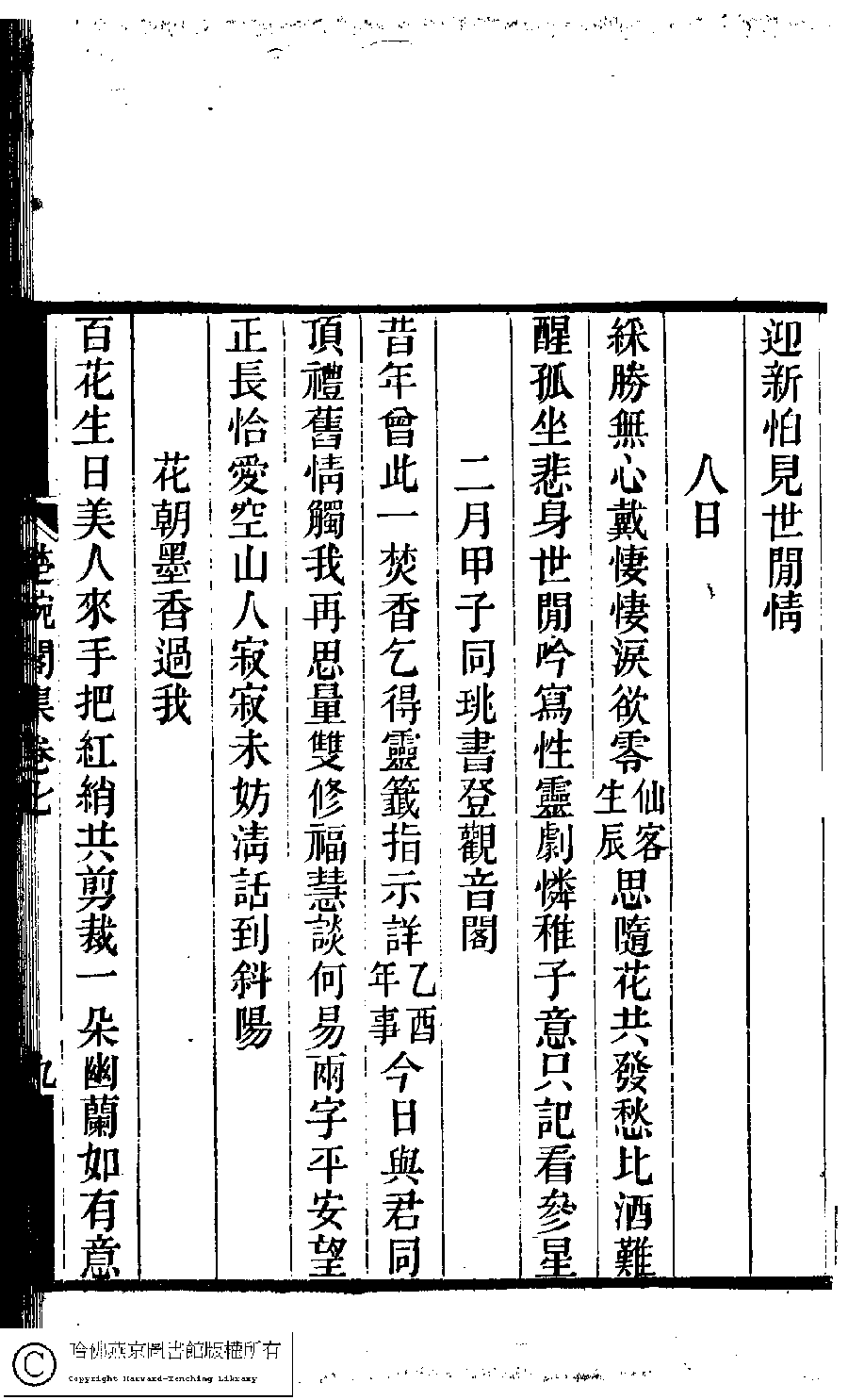 | (PRINT FRIENDLY VERSION) 楚畹閣集﹕十二卷(清季蘭韻撰)。清道光二十七年(1847)刻本 ![]() Page : 7.9a | click for larger image | Back |