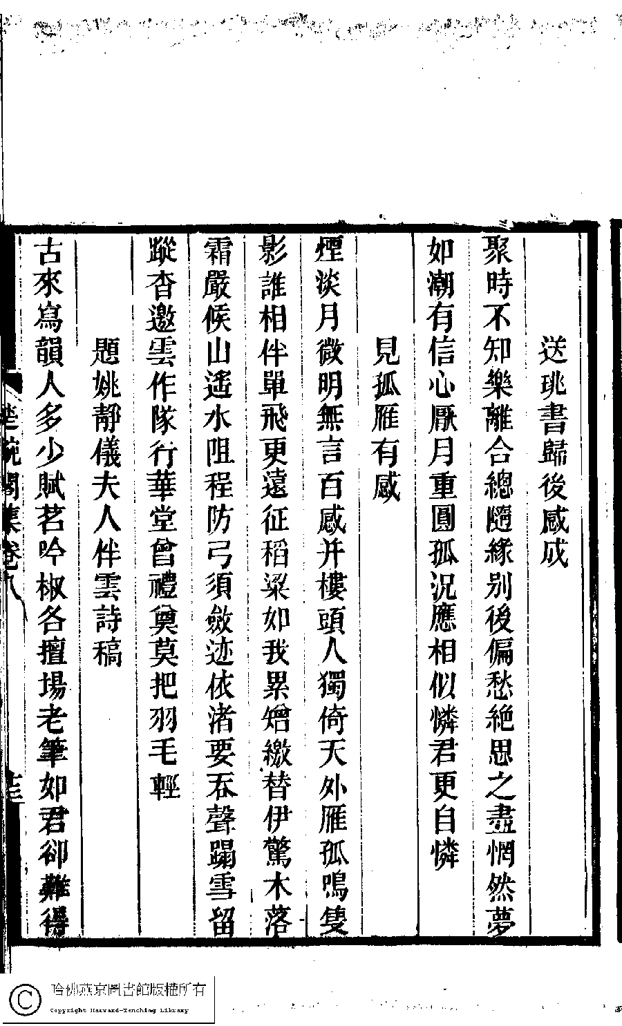 | (PRINT FRIENDLY VERSION) 楚畹閣集﹕十二卷(清季蘭韻撰)。清道光二十七年(1847)刻本 ![]() Page : 8.13b | click for larger image | 楚畹閣集﹕十二卷(清季蘭韻撰)。清道光二十七年(1847)刻本![]() Page : 8.13a | click for larger image | Back |