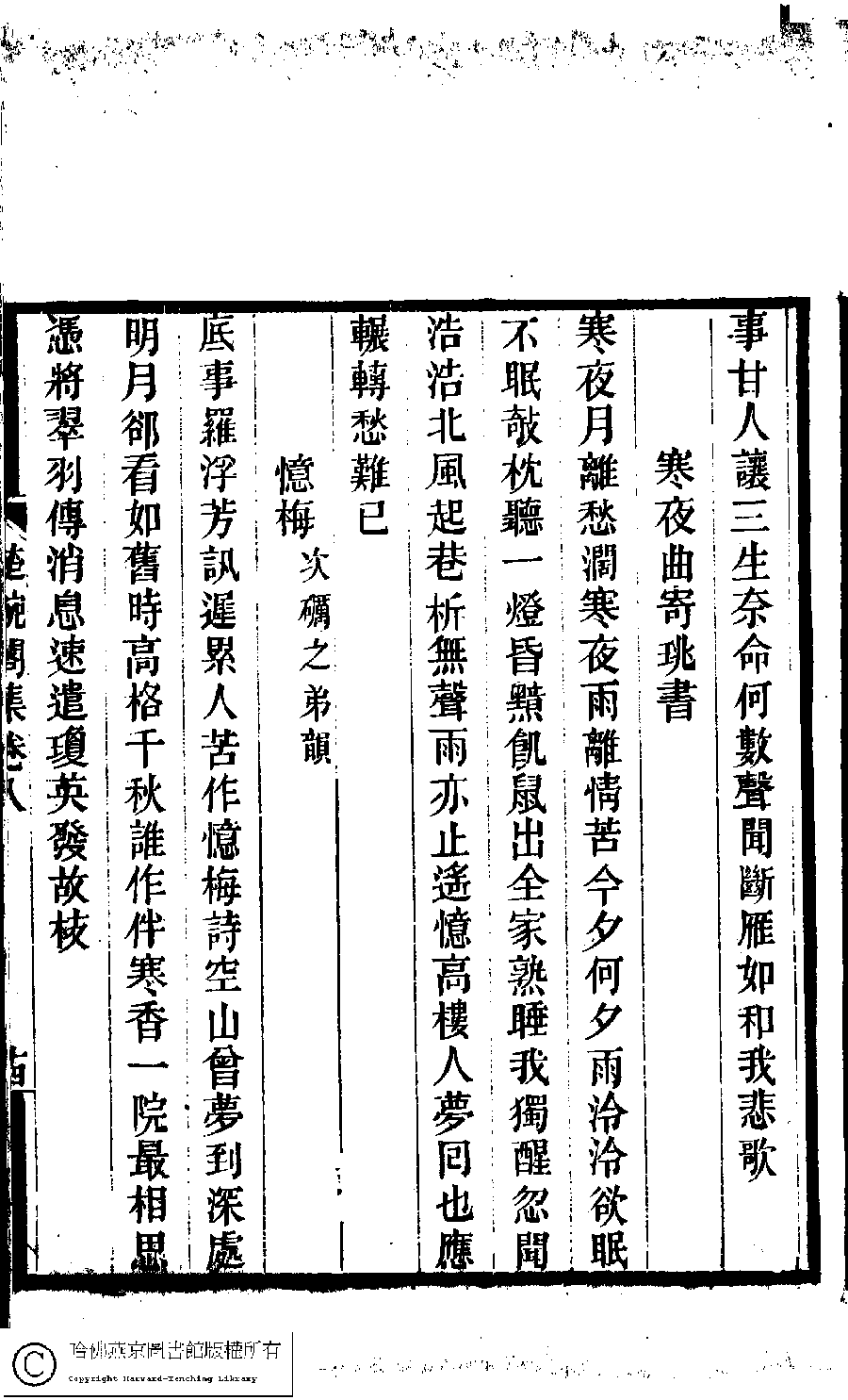 | (PRINT FRIENDLY VERSION) 楚畹閣集﹕十二卷(清季蘭韻撰)。清道光二十七年(1847)刻本 ![]() Page : 8.14a | click for larger image | Back |