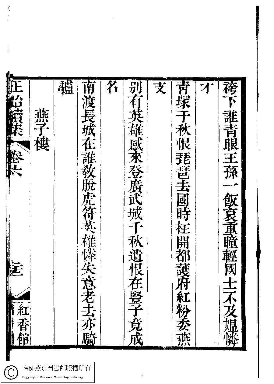 | (PRINT FRIENDLY VERSION) 國朝閨秀正始續集﹕十卷﹐附錄﹕一卷﹐補遺﹕一卷﹐輓詞﹕一卷(清惲珠輯)。清道光十六年(1836)紅香館刻本。 ![]() Page : 6.22a | click for larger image | 國朝閨秀正始續集﹕十卷﹐附錄﹕一卷﹐補遺﹕一卷﹐輓詞﹕一卷(清惲珠輯)。清道光十六年(1836)紅香館刻本。![]() Page : 6.21b | click for larger image | Back |