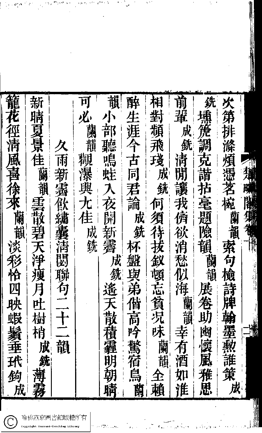 | (PRINT FRIENDLY VERSION) 楚畹閣集﹕十二卷(清季蘭韻撰)。清道光二十七年(1847)刻本 ![]() Page : 10.11b | click for larger image | 楚畹閣集﹕十二卷(清季蘭韻撰)。清道光二十七年(1847)刻本![]() Page : 10.11a | click for larger image | Back |